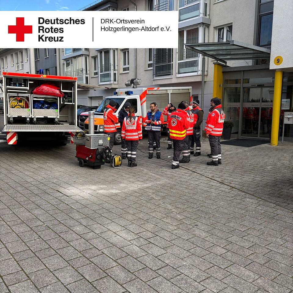 Nach einer ersten Lageerkundung vor Ort wurde entschieden, dass zur Versorgung des Altbaus zwei mobile Heizgeräte erforderlich sind. In der Folge wurden das Leistungsmodul Sanität aus Holzgerlingen/Altdorf sowie ein weiterer Gerätewagen Sanität aus Böblingen nachalarmiert. Die Gerätewagen Sanität verfügen über eine mobile Zeltheizung, welche in diesem Fall benötigt wurde. Die beiden Heizungen wurden aufgebaut und in Betrieb genommen.