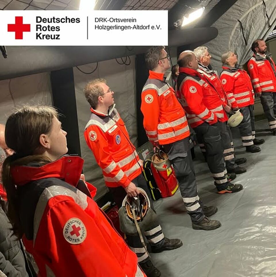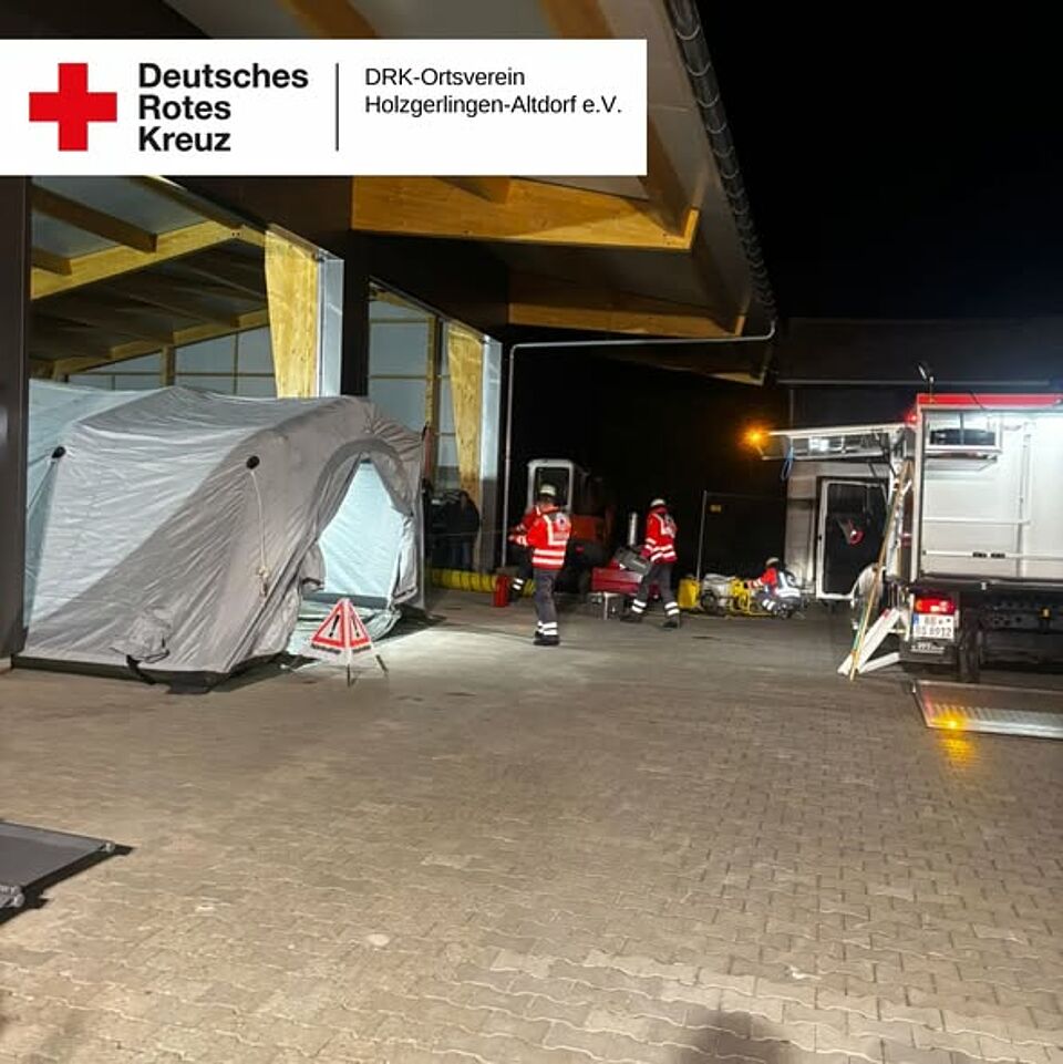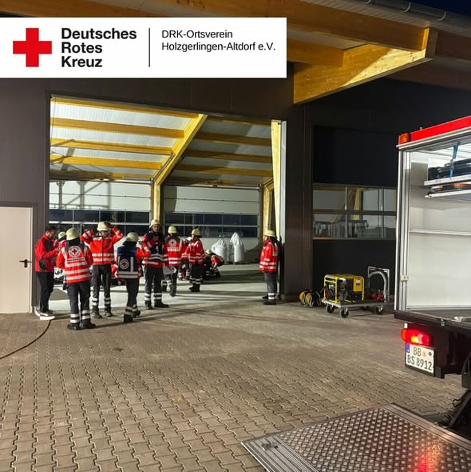 Im Zuge der Übung wurde zudem die Tragekomponente des Landkreises Böblingen praktisch erprobt. Der entsprechende Anhänger ist für den Einsatz bei Großschadenslagen vorgesehen und beinhaltet insgesamt 50 Tragen, 50 Tragetücher sowie 50 Decken.